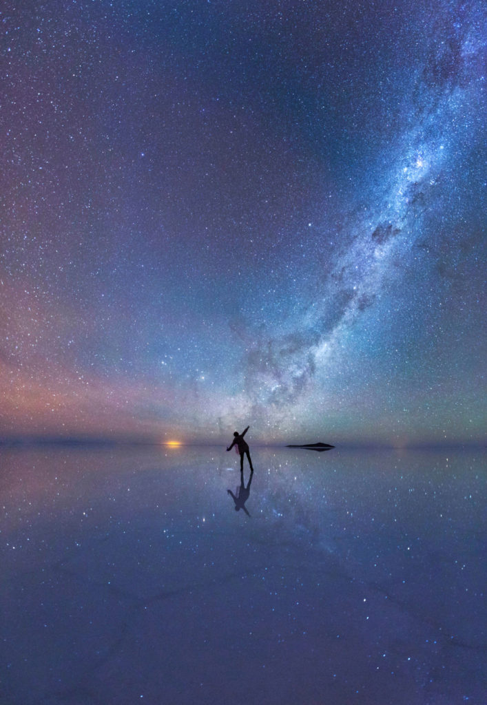Salar de Uyuni is the world’s largest salt flat. It covers 4,086 square miles, sits 11,995 feet above sea level, and during the rainy season (November – March) a thin layer of water covers the ground, causing a heavenly mirror-like effect.